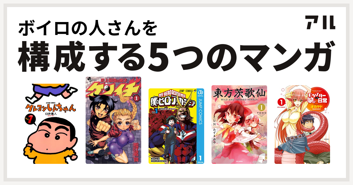 ボイロの人さんを構成するマンガはクレヨンしんちゃん 史上最強の弟子 ケンイチ 僕のヒーローアカデミア 東方茨歌仙 wild and horned hermit モンスター娘のいる日常 私を構成する5つのマンガ アル