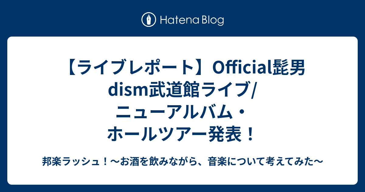 ライブレポート official髭男dism武道館ライブ ニューアルバム ホールツアー発表 邦楽ラッシュ お酒を飲みながら 音楽について考えてみた