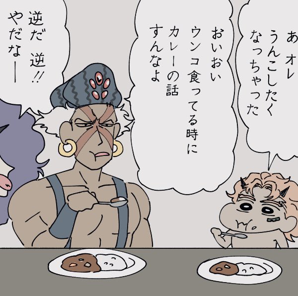 クレヨンしんちゃん on twitter しんのすけ あっ オラうんこしたくなっちゃった ひろし おいおい うんこ食ってる時にカレーの話すんなよ みさえ 逆よ 逆