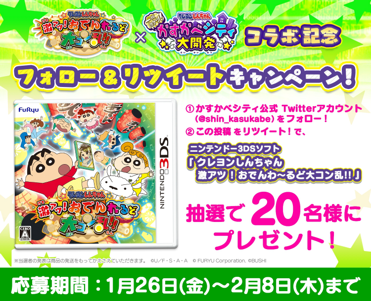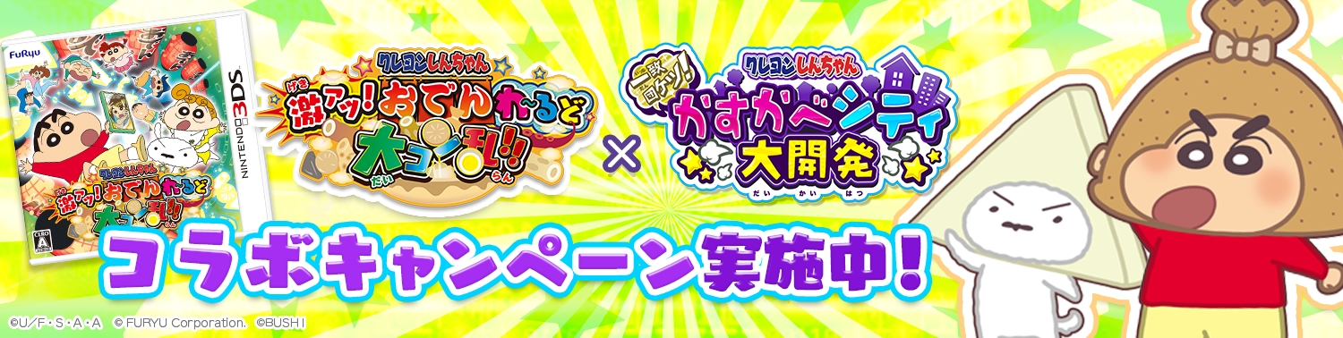 クレヨンしんちゃん 一致団ケツ かすかべシティ大開発 ニンテンドー3dsソフト クレヨンしんちゃん 激アツ おでんわ るど大コン乱 とのコラボを開催 boom app games