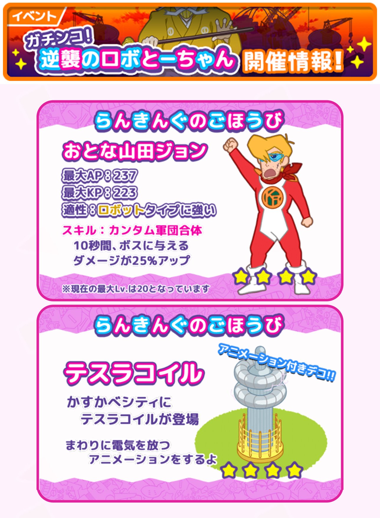クレヨンしんちゃん かすかべシティ大開発 on twitter 防衛イベント集計終了 ガチンコ 逆襲のロボとーちゃん イベントのランキング集計が終了しました 各ランキングの結果はゲーム内 イベント結果発表 を また ごほうび はポストに届くのでそれぞれ確認