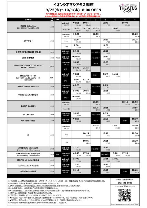 イオンシネマ シアタス調布 調布 上映スケジュール 上映時間 映画館 映画 com