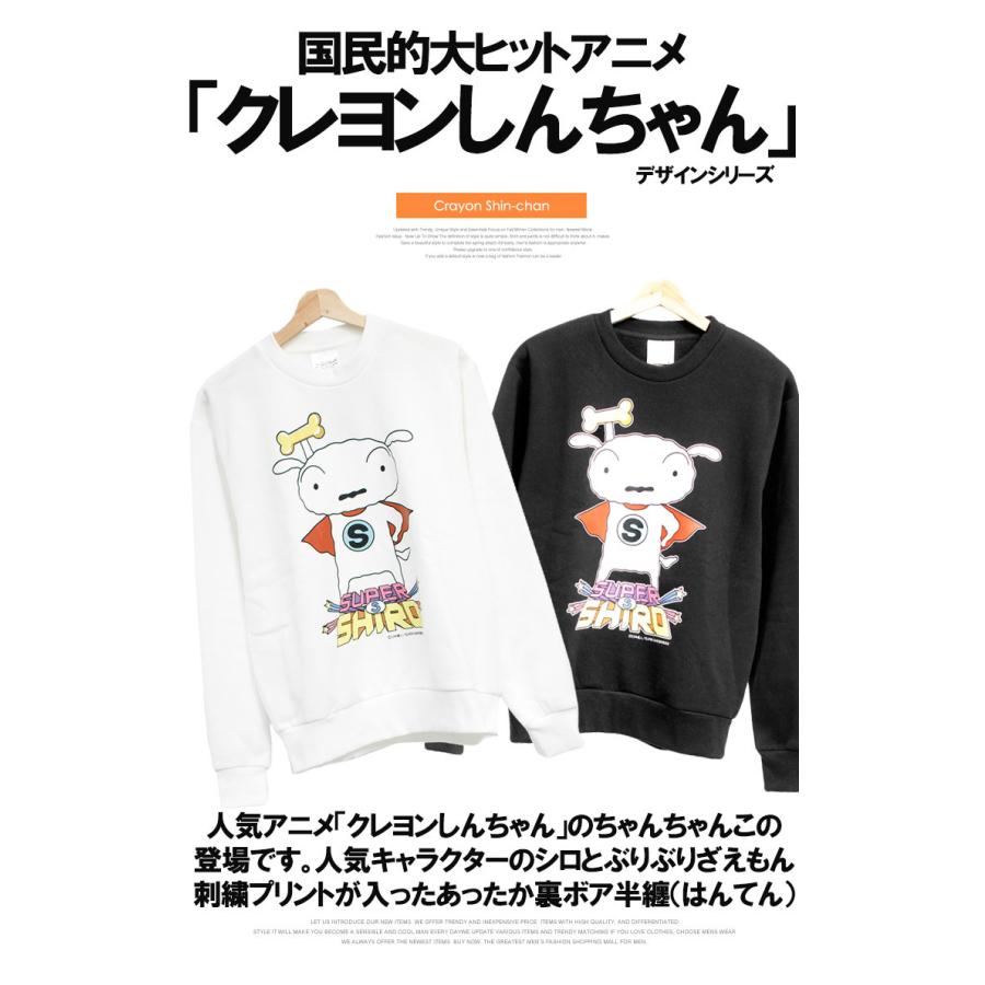送料無料 クレヨンしんちゃん スウェット メンズ 大きいサイズ super shiro スーパーシロ プリント 裏起毛 クルーネック トレーナー 305049 メンズファッション kogare 通販 yahoo ショッピング