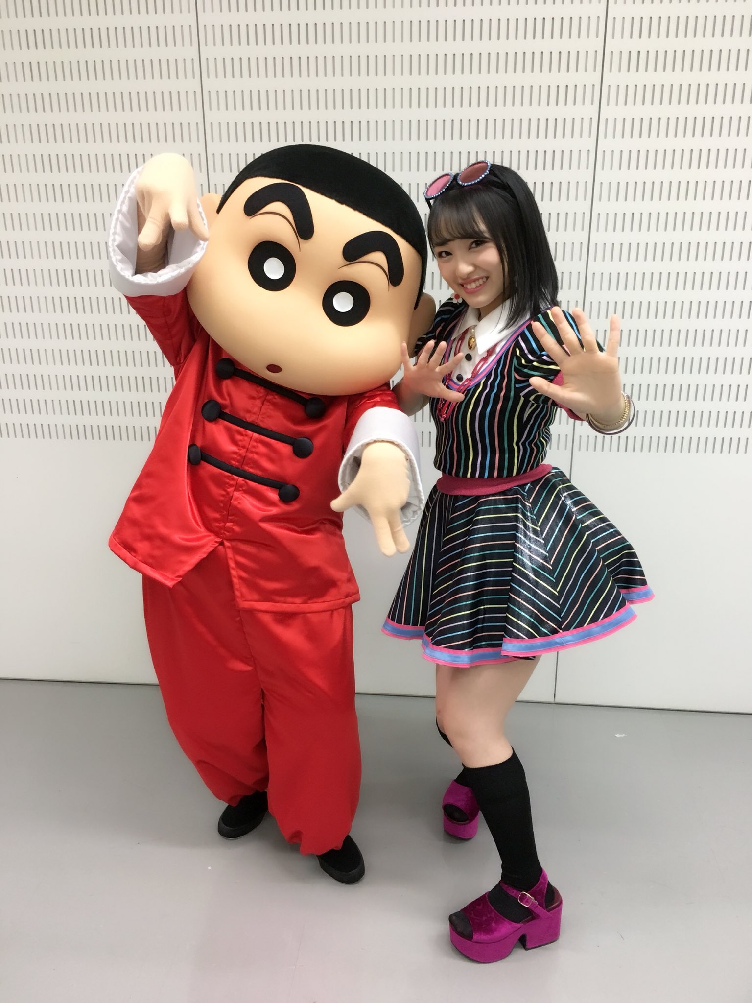 クレヨンしんちゃん 公式 on twitter 友情濃いめだゾ 昨日はキレイなおねいさんたちとお友達になっちゃったゾ みんなカンフーポーズがお上手ですな クレしん 4月13日公開 mステ 山本彩 向井地美音 白間美瑠