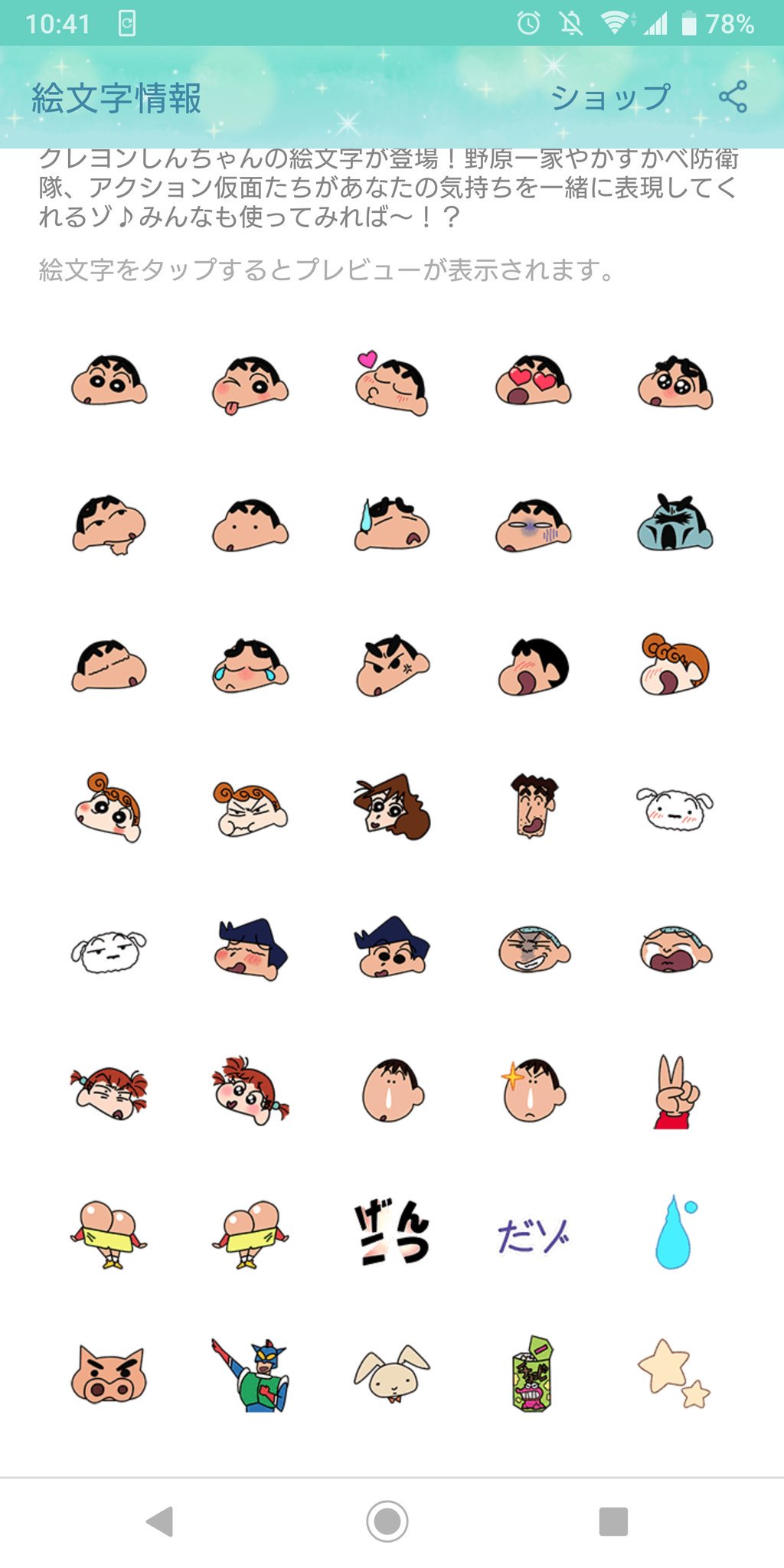 line絵文字 もっと クレヨンしんちゃん 絵文字 40種類 250円