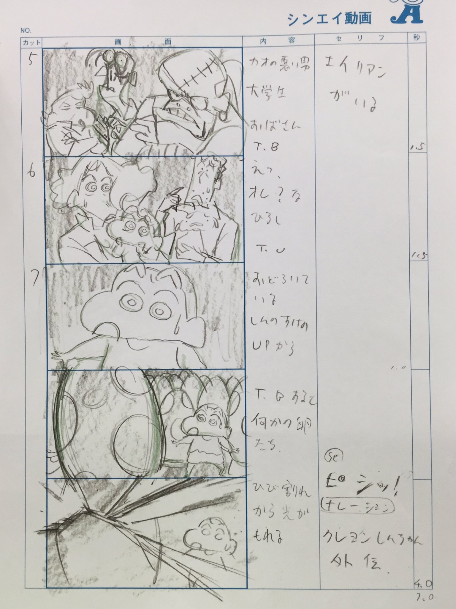 三原三千夫 twitter પર amazonプライムビデオ クレヨンしんちゃん外伝 エイリアンvsしんのすけ全13話 毎週配信 1話の絵コンテ e