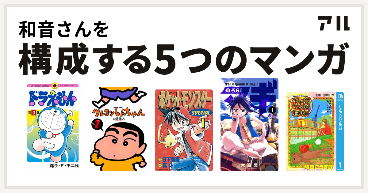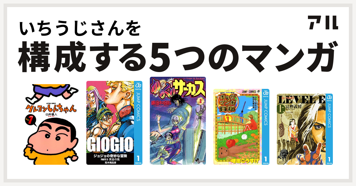 いちうじさんを構成するマンガはクレヨンしんちゃん ジョジョの奇妙な冒険 第5部 からくりサーカス 増田こうすけ劇場 ギャグマンガ日和 レベルe 私を構成する5つのマンガ アル