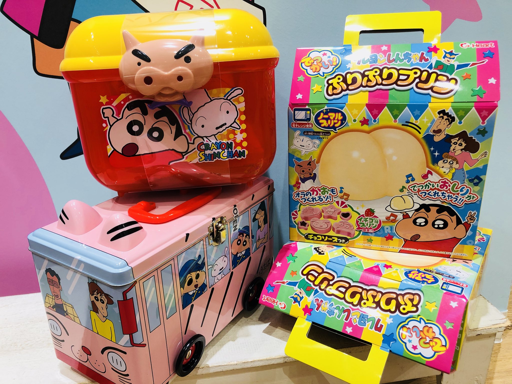公式 クレヨンしんちゃんオフィシャルショップ アクションデパート東京駅店 on twitter こんにちは 今日も元気にオープンしております お菓子詰め合わせのクリアトランク バス缶を販売中 食べ終わった後収納出来たり ようちえんバスでは遊ぶ事も出来ます