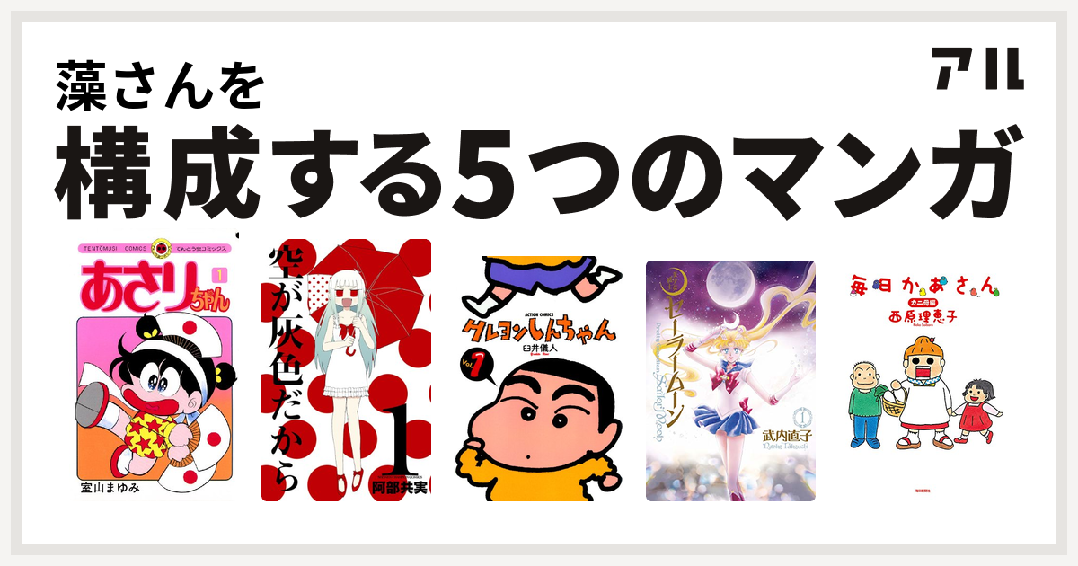 藻さんを構成するマンガはあさりちゃん 空が灰色だから クレヨンしんちゃん 美少女戦士セーラームーン 毎日かあさん 私を構成する5つのマンガ アル