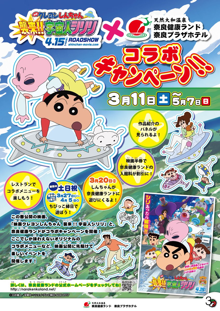 奈良健康ランド 奈良プラザホテル 公式 on twitter 映画 クレヨンしんちゃん 爆盛 カンフーボーイズ 拉麺大乱 コラボイベントに 多数ご参加頂き有難うございました w 映画チケット半券での割引は 引き続き実施中です しんちゃんの映画を見てから