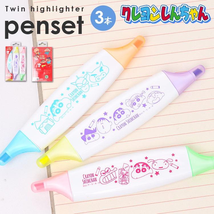 クレヨンしんちゃん 蛍光ペン 3本セット ラインマーカー カラーペン ツインマーカー キャラクター グッズ 通学 小学生 中学生 高校生 おしゃれ 可愛い