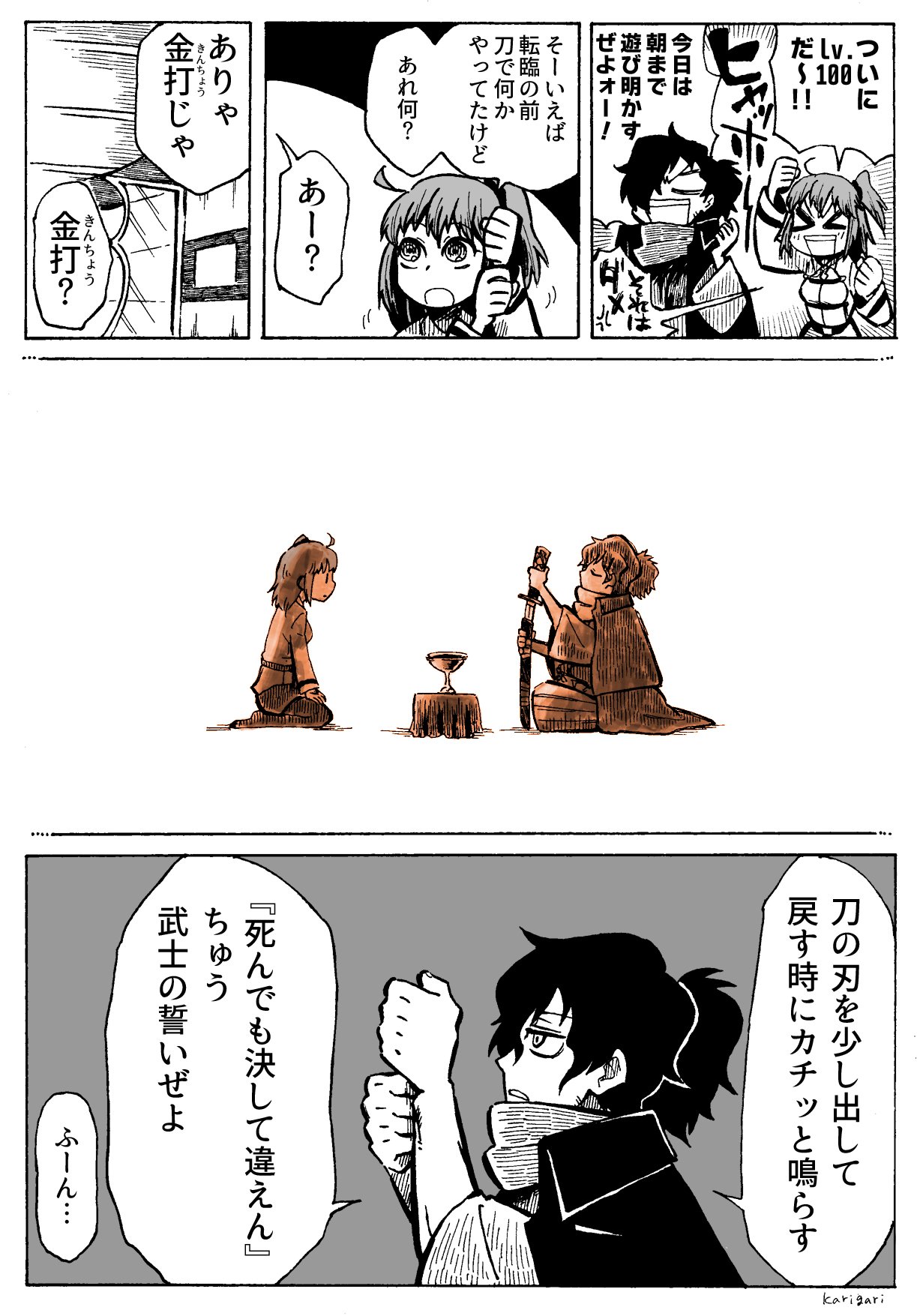 北郷アキ アキ乃助 on twitter q きんちょうってなんなん a 武士が堅く誓いを立てるときにする儀式みたいなものを金打 きんちょう と言います 指切りげんまん的な 刀を少し抜き峰を相手に向け峰と峰を合わせることである クレヨンしんちゃん嵐を呼ぶ