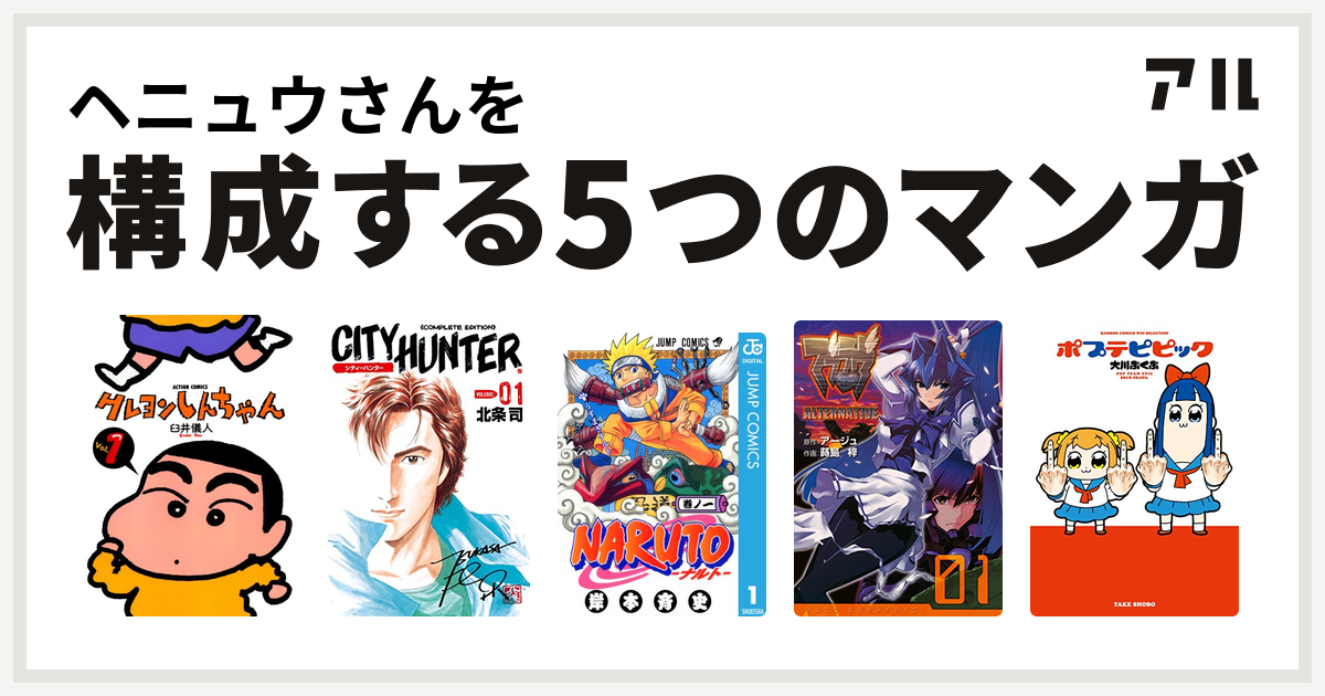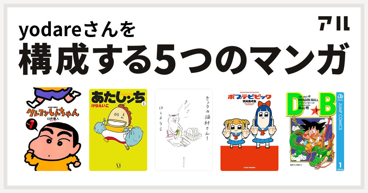 yodareさんを構成するマンガはクレヨンしんちゃん あたしンち きょうの猫村さん ポプテピピック ドラゴンボール 私を構成する5つのマンガ アル
