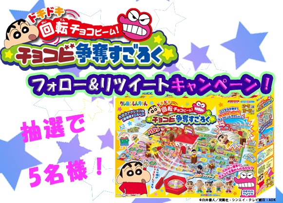 クレヨンしんちゃんがボードゲームになって登場 クレヨンしんちゃん ドキドキ回転チョコビーム チョコビ争奪すごろく 2017年10月26日 木 発売 セガトイズのプレスリリース