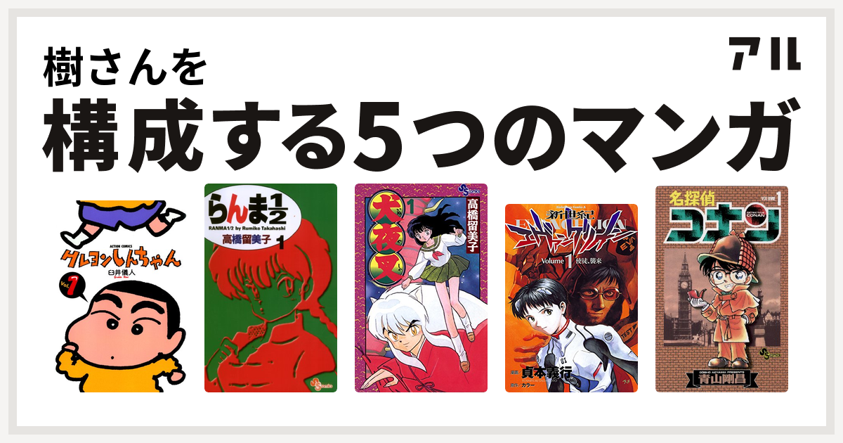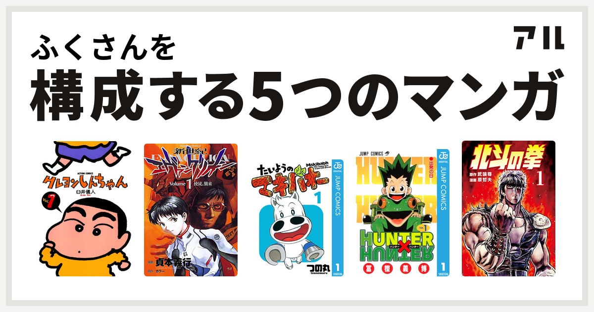 ふくさんを構成するマンガはクレヨンしんちゃん 新世紀エヴァンゲリオン たいようのマキバオー hunter hunter 北斗の拳 私を構成する5つのマンガ アル
