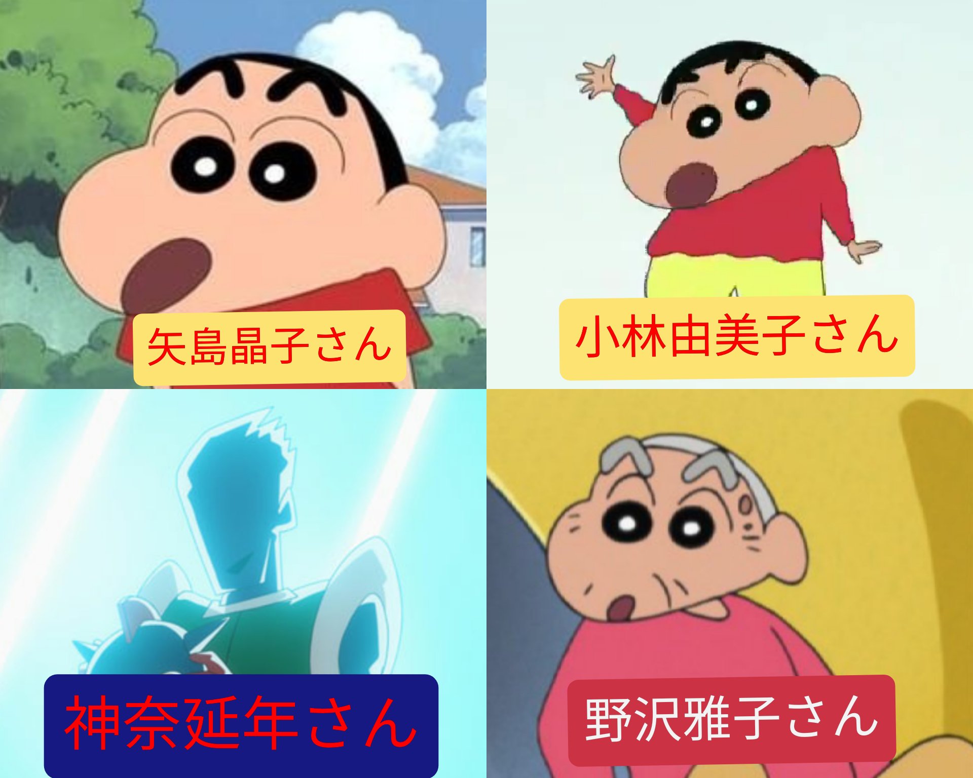 ファイブ スター ホシオ on twitter 野原しんのすけ 声優さんまとめ じんのすけ 初代 矢島晶子さん 二代目 小林由美子さん 大人版 神奈延年さん じんのすけ 野沢雅子さん クレヨンしんちゃん