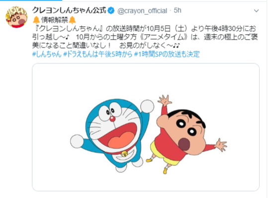 ドラえもん クレヨンしんちゃん が金曜夜から土曜夕方にお引越し 新しい放送時間になっても 見れば ニコニコニュース